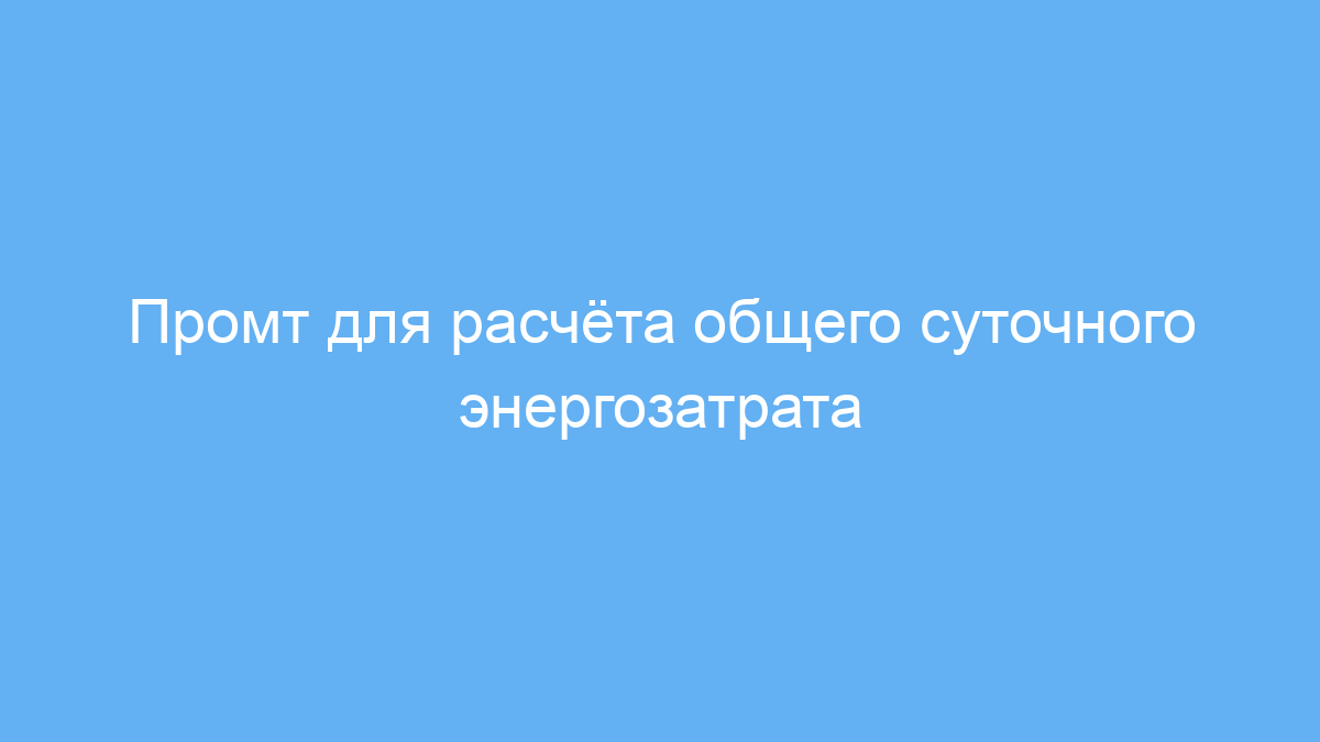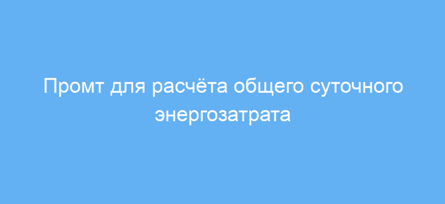 Использование этого промта позволяет быстро и удобно получить расчет суточного энергозатрата, учитывая индивидуальные данные и образ жизни. Это экономит время и помогает принимать обоснованные решения при планировании питания и тренировок.