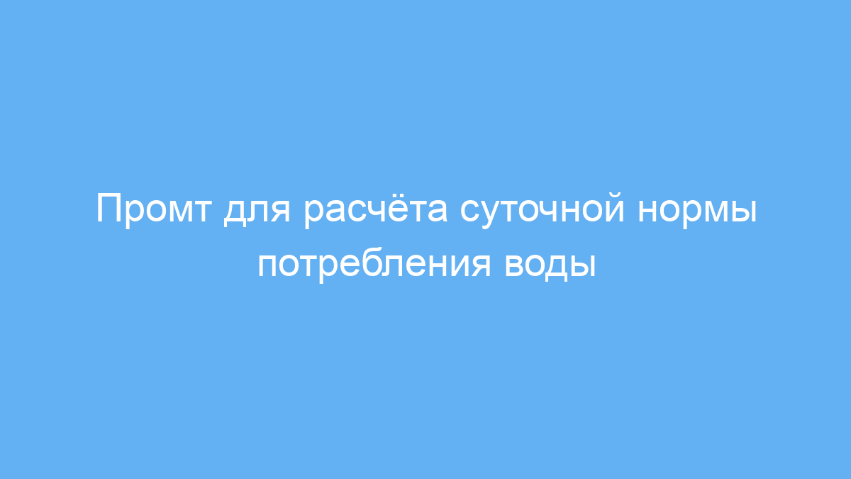 Этот промт помогает быстро и точно определить индивидуальную суточную норму потребления воды с учётом ключевых факторов. Это экономит время на поиски информации и позволяет избегать ошибок, связанных с неправильной гидратацией.