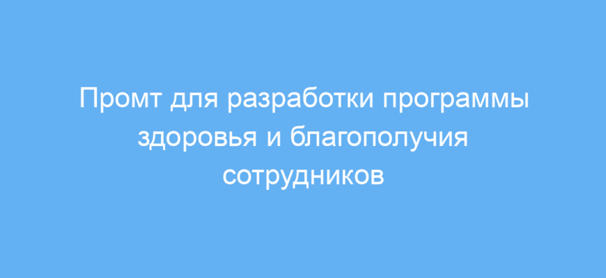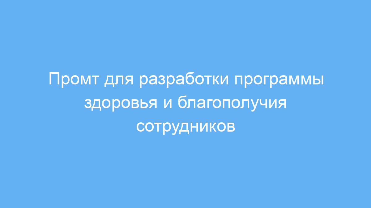 Основная задача промта — помочь сформировать комплексный подход к улучшению самочувствия работников, что положительно скажется на их продуктивности и корпоративной культуре. В ответе нейросеть предложит идеи и рекомендации, которые можно адаптировать под конкретные нужды компании.