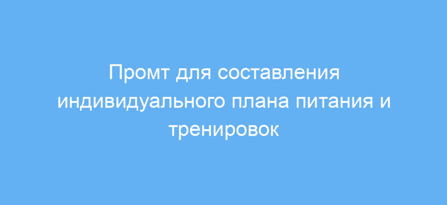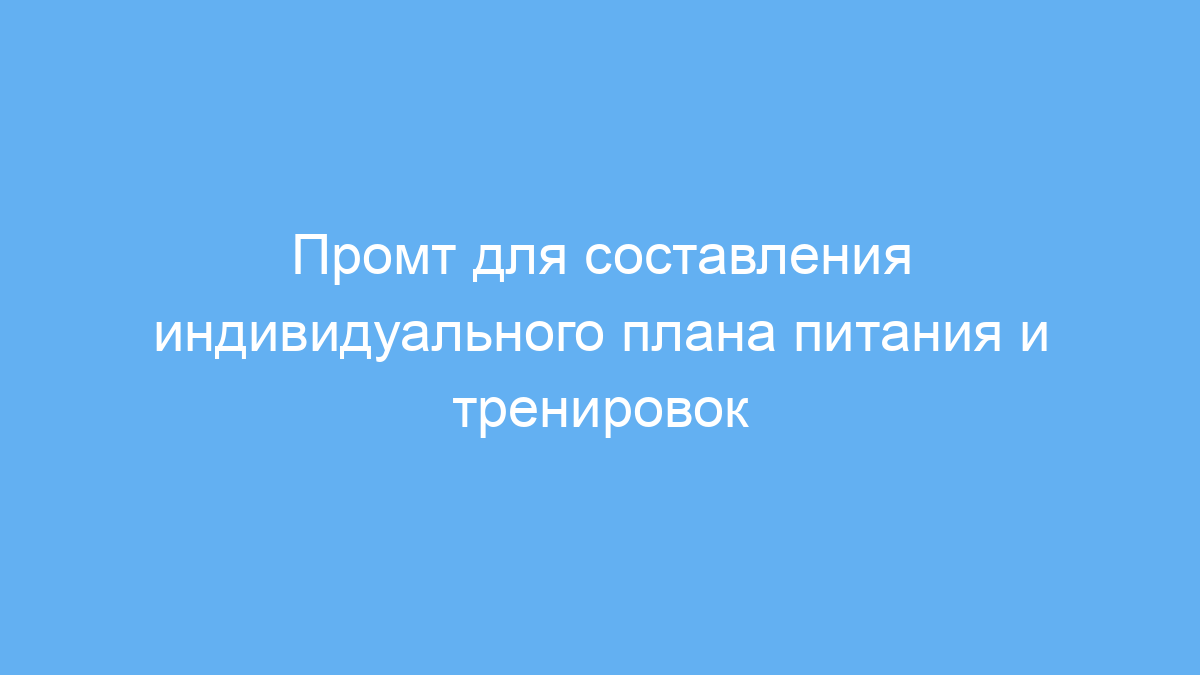 Этот промт предназначен для пользователей, которые хотят получить персонализированный план питания и упражнений от нейросети. Он особенно полезен для тех, кто заботится о своем здоровье, хочет улучшить физическую форму, сбросить вес или просто оптимизировать образ жизни с учётом личных данных. Благодаря промту, можно получить чёткий и понятный план, учитывающий возраст, пол, вес, состояние здоровья, пищевые предпочтения и цели.