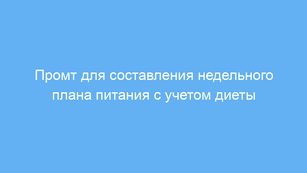 Этот промт создан для тех, кто хочет составить удобный и сбалансированный план питания на неделю, учитывая индивидуальные диетические ограничения и вкусовые предпочтения. Он идеально подходит людям с особыми потребностями в еде: аллергиями, непереносимостью ингредиентов, вегетарианцам, спортсменам или тем, кто просто хочет разнообразить рацион.