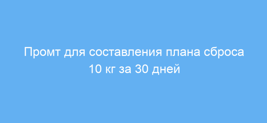 Данный промт создан для тех, кто хочет быстро и безопасно похудеть на 10 кг за месяц. Он помогает получить структурированный план с умеренной диетой и упражнениями, направленными не только на снижение веса, но и на укрепление иммунитета. Используя этот промт, вы решаете проблему нехватки времени на самостоятельное составление сбалансированного рациона и эффективной тренировочной программы.