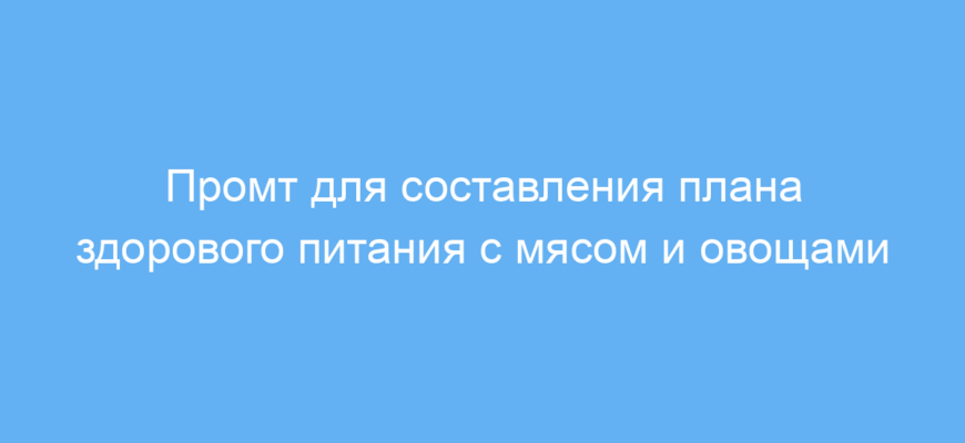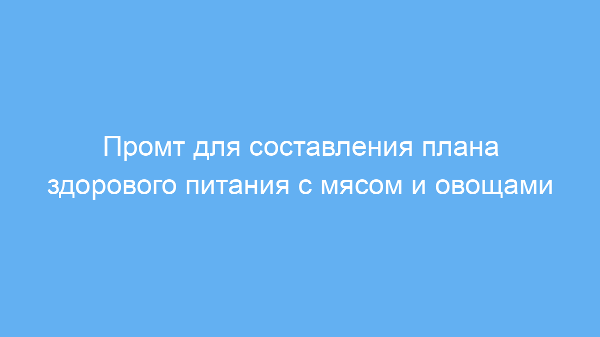 Данный промт предназначен для людей, которые хотят легко создать план питания на основе здоровых мясных и овощных блюд. Он особенно полезен для тех, кто следит за своим рационом, хочет питаться разнообразно и полезно, а также для поваров и диетологов, которым нужно быстро подготовить меню с балансом белков, жиров и овощей.