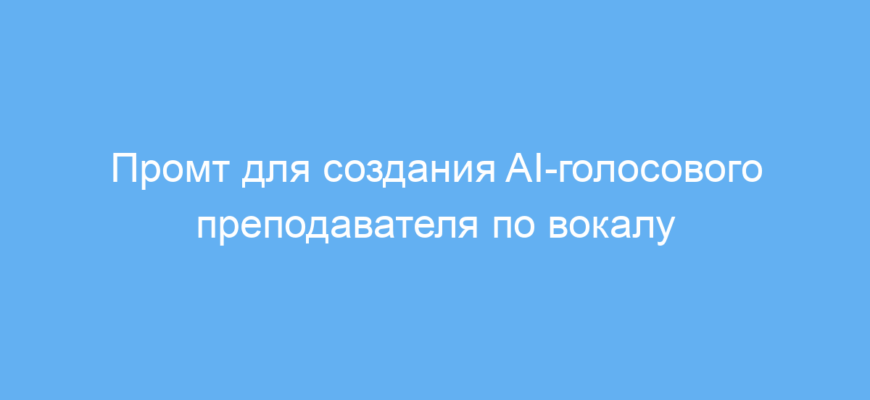 Промт позволяет автоматизировать процесс обучения звуковой интонации, тональности и диапазона голоса. На основе первичного анализа голосовых параметров AI формирует 30-дневную программу тренировок с повторением за учителем. Если студент выполняет упражнения неправильно, система подсказывает дополнительные видеоматериалы для закрепления навыков. Регулярная проверка прогресса помогает отслеживать и корректировать обучение.