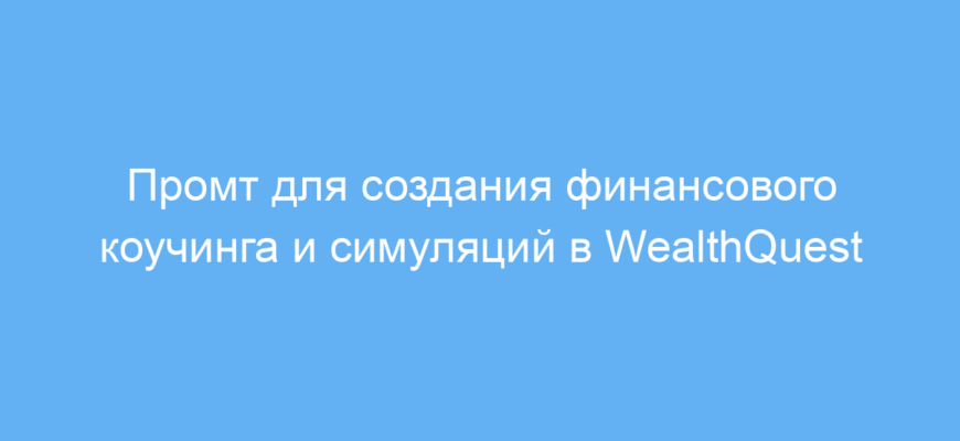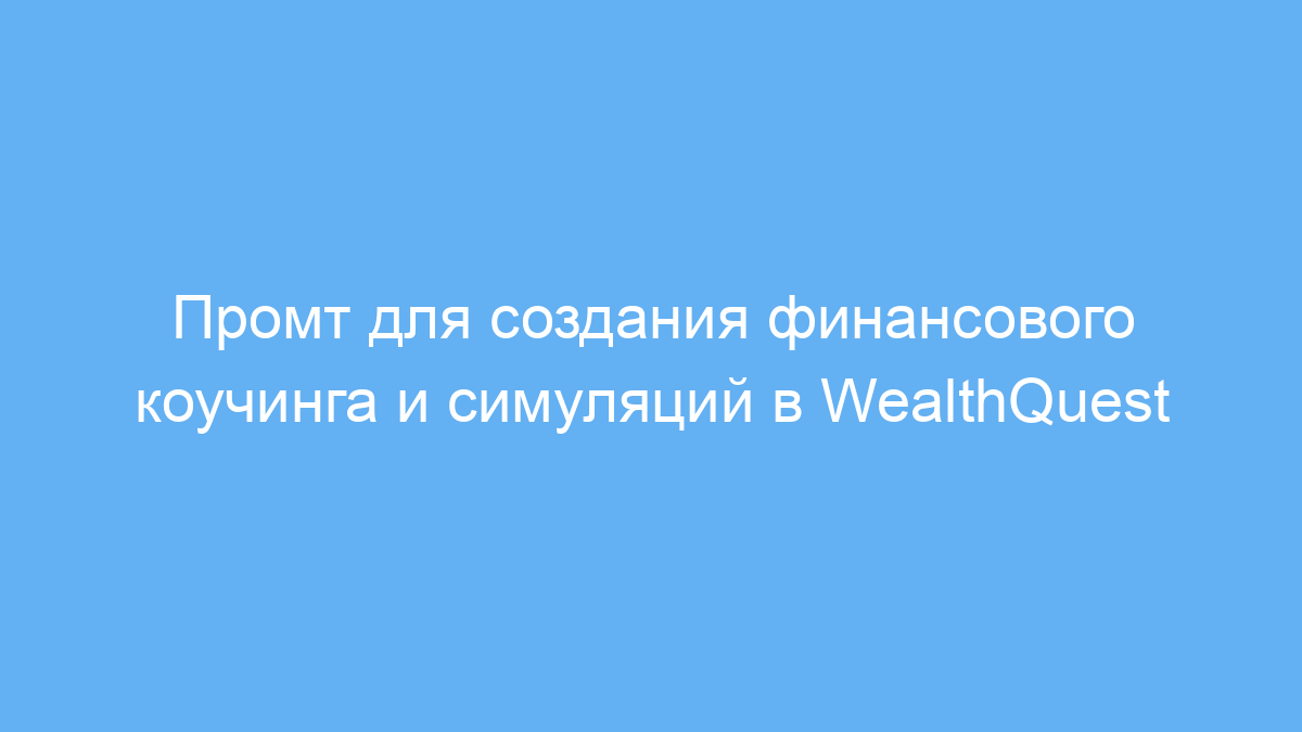 Этот промт создан для разработчиков и пользователей, которые хотят применять нейросети для разработки финансовых сервисов, таких как обучение финансовой грамотности, коучинг и инвестиционные рекомендации. Он помогает структурировать описание платформы WealthQuest, которая поддерживает пользователей на пути к финансовой независимости.