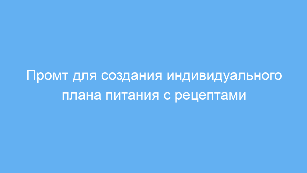 Этот промт позволяет быстро получить детальный и удобный план питания, который учитывает личные параметры, предпочтения и образ жизни. Это значительно экономит время на планирование и облегчает соблюдение правильного рациона, помогая поддерживать здоровье и достигать целей по питанию.