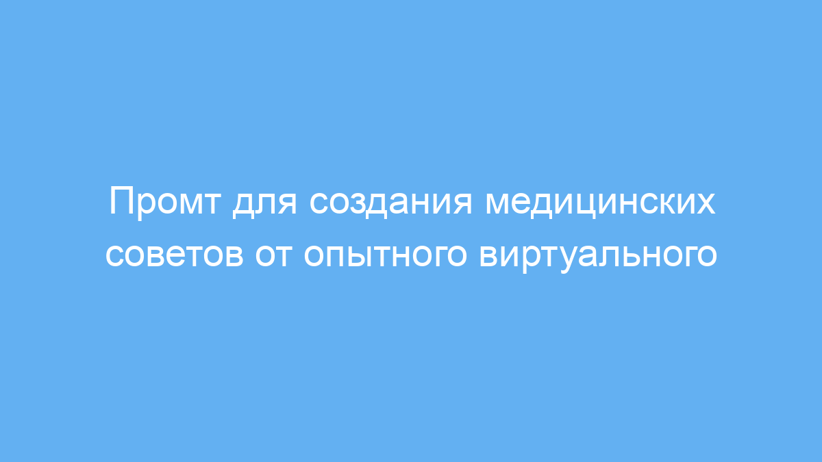 Этот промт предназначен для пользователей, которые создают виртуального помощника или чат-бота с медицинской направленностью. Он особенно полезен для авторов контента, разработчиков чат-ботов и специалистов по обучению нейросетей в сфере здравоохранения и консультаций.