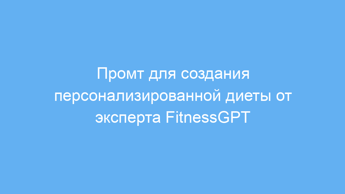 Этот промт предназначен для тех, кто хочет получить индивидуальный план питания, составленный на основе личных данных и целей в сфере здоровья и фитнеса. Он помогает решить задачи по подбору диеты с учётом возраста, пола, роста, веса, медицинских ограничений, пищевых предпочтений и уровня активности.