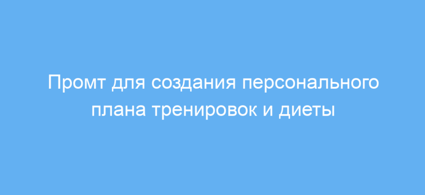 Промт решает задачи персонализации плана — на основе введенных данных он формирует рекомендации, которые подходят именно вам. Работа промта построена так, что нейросеть берет на себя роль профессионального тренера и диетолога, давая четкие и экспертные советы по тренировкам и питанию.