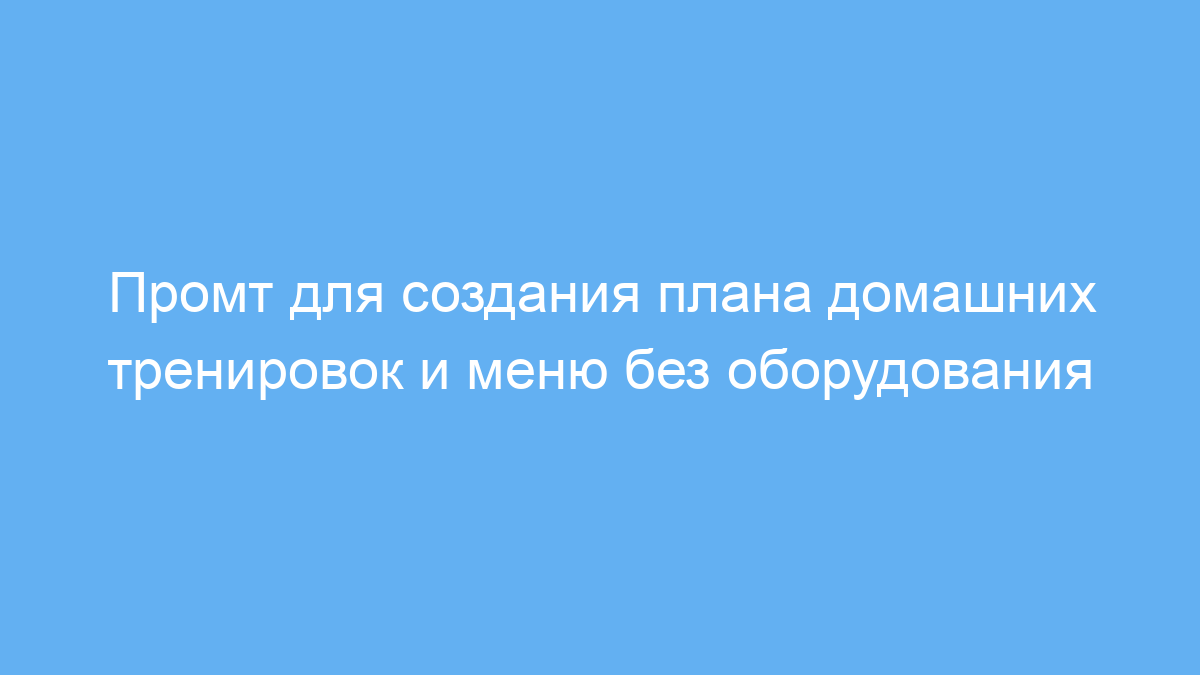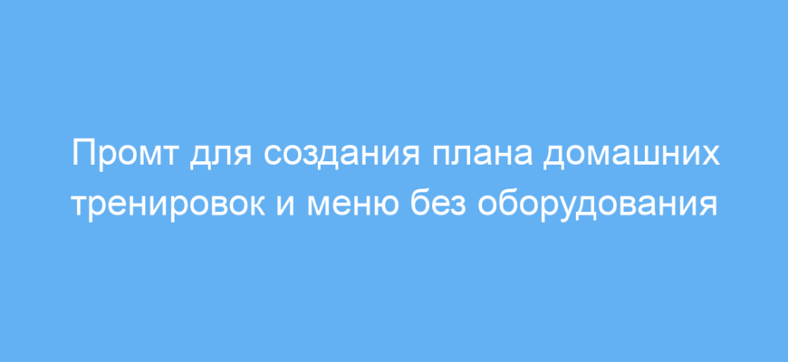Промт работает следующим образом: пользователь описывает свои условия — отсутствие спортзала и оборудования, а также место проживания. На основе этого нейросеть генерирует адаптированный план занятий и рацион питания, подходящий именно для таких условий. Это экономит время на поиск информации и помогает начать тренировки без лишних затрат.