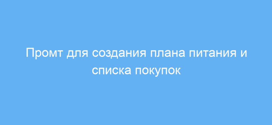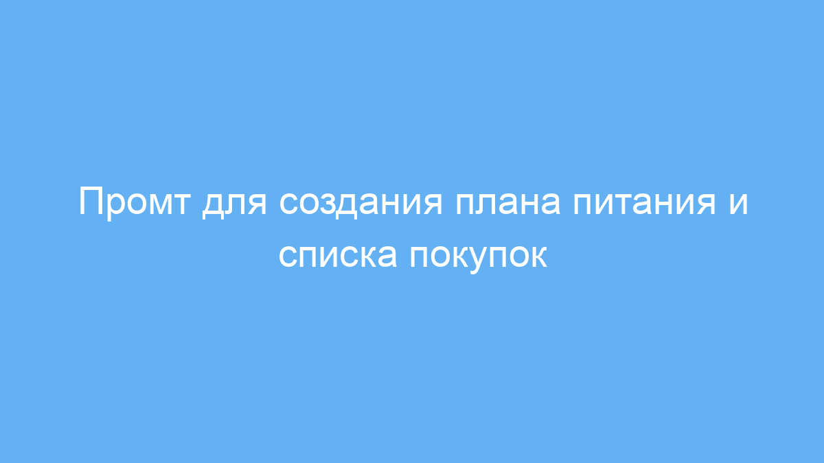 Промт помогает решить проблему трудности в составлении разнообразного и сбалансированного меню. Он позволяет получить не просто список блюд, но и рекомендации по покупке необходимых продуктов, что экономит время и избавляет от ошибок в питании.