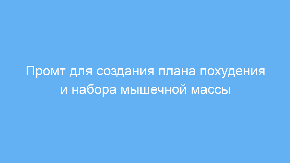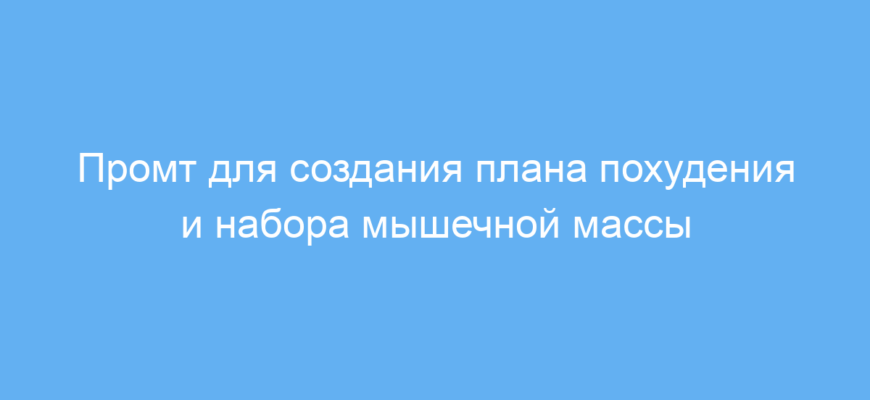 С помощью этого промта можно получить структурированную рекомендацию, подходящую под индивидуальные цели. Промт работает путем запроса к нейросети создать детальный план с учетом обеих задач – сжигания жира и увеличения мышц – с конкретными тренировками и питанием.