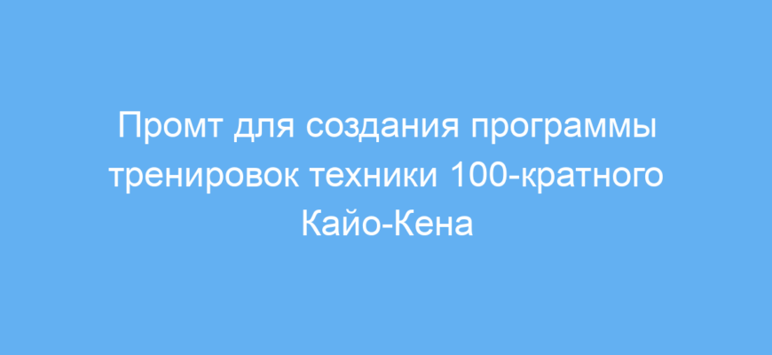 Использование этого промта позволяет быстро и структурировано создавать полноценные программы тренировок для освоения сложных боевых техник, таких как 100-кратный Кайо-Кен. Он решает задачу планирования занятий с учётом постепенного увеличения нагрузки и контроля прогресса, что помогает избежать ошибок в подготовке и добиться максимальных результатов.
