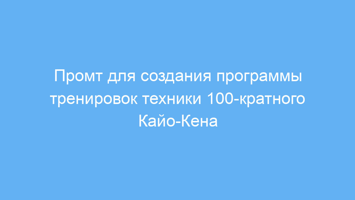 Этот промт предназначен для тренеров, спортсменов и энтузиастов боевых искусств, а также для всех, кто хочет создать структурированную программу тренировок для освоения сложной техники – 100-кратного Кайо-Кена, известной по манге и аниме. Он помогает грамотно построить тренировочный процесс с учётом разных этапов: от общей физической подготовки до отработки конкретных боевых навыков.