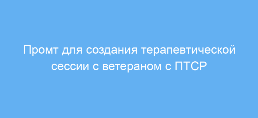 Данный промт предназначен для специалистов в области психотерапии, разработчиков программ с искусственным интеллектом и исследователей, которые хотят автоматизировать проведение терапевтических сессий с ветеранами, страдающими от посттравматического стрессового расстройства (ПТСР). Он помогает создавать интерактивные виртуальные среды, где ветеран может безопасно взаимодействовать с моделями своих травм и окружения под контролем терапевта.