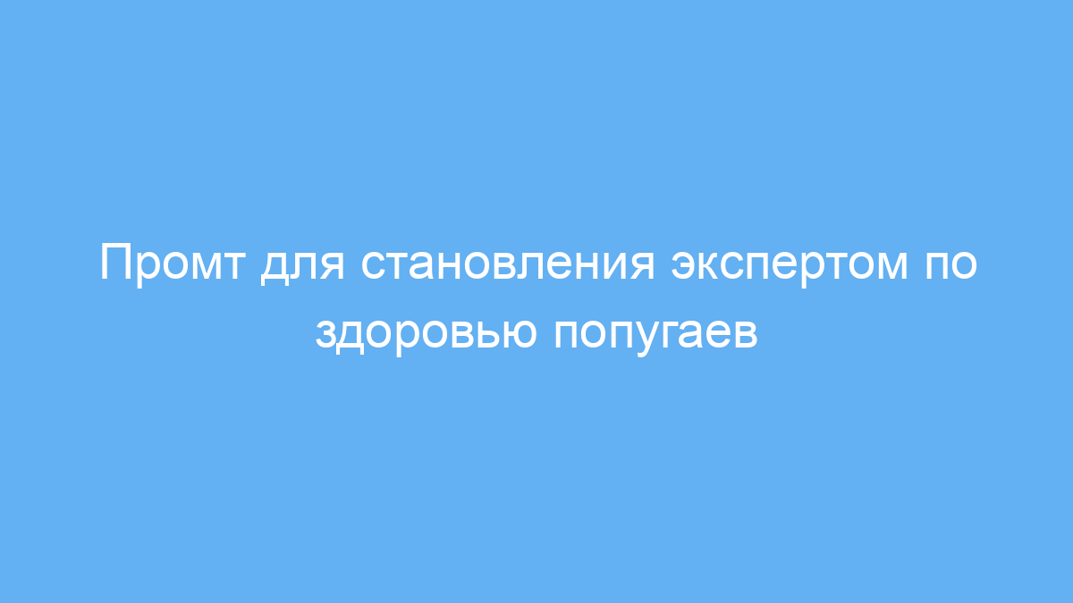 Используйте промт как основу для создания структурированного текста, который охватывает все важные аспекты здоровья попугаев. Примерьте его для подготовки докладов, статей, курсов и консультаций.